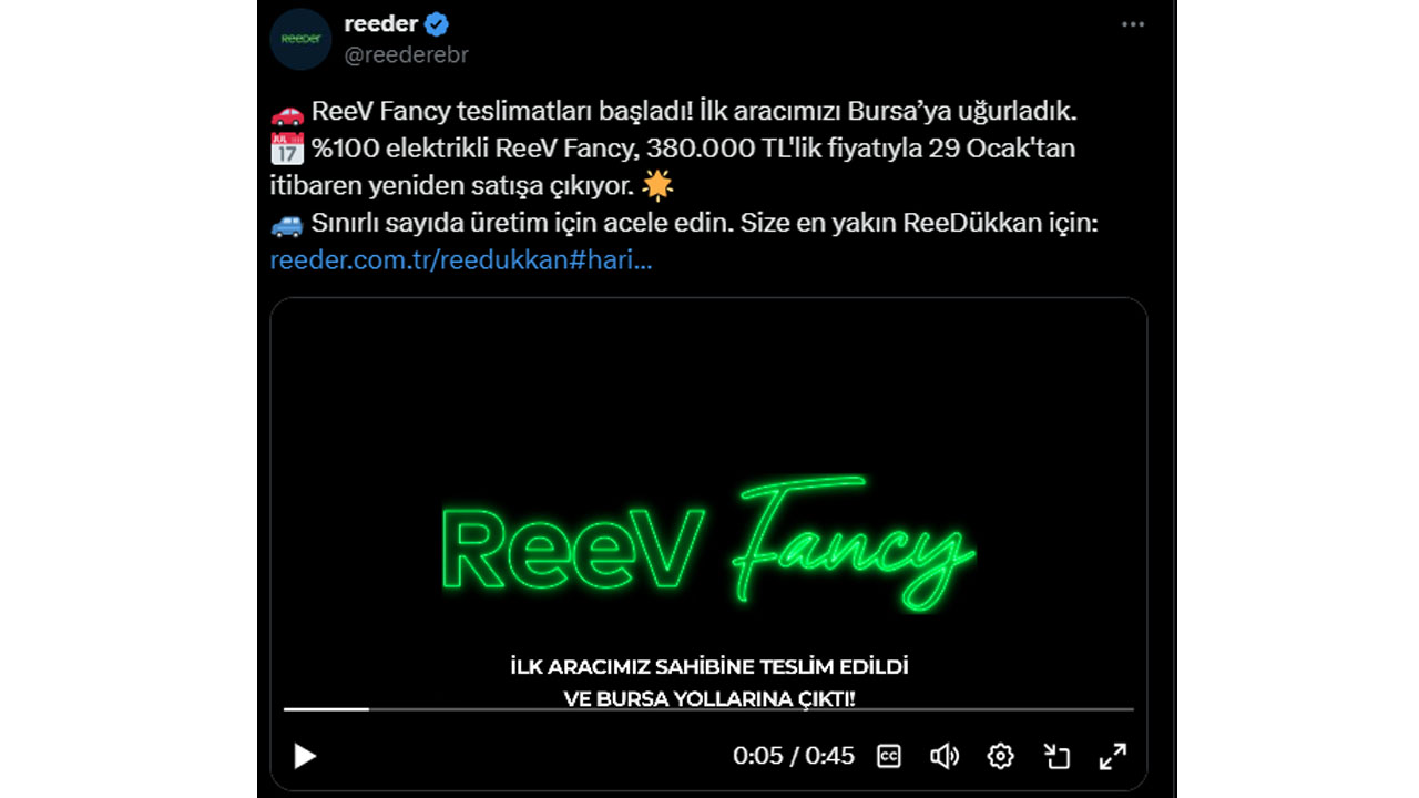 Reeder, 28 Ocak Salı günü X'ten yaptığı paylaşımda, ilk aracın sahibine teslim edildiği bilgisini verdi.
