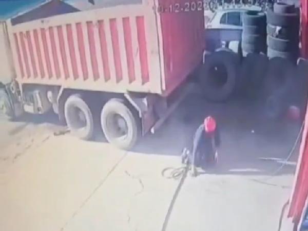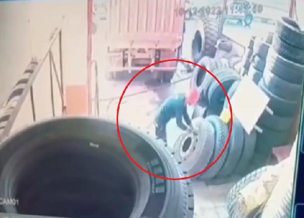 Lastikçinin yara almadığı o anlar güvenlik kamerasına yansıdı.