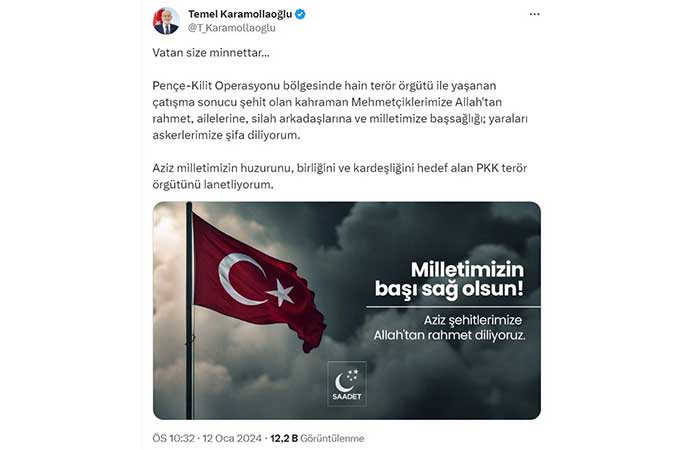 Siyasilerden şehitler hakkında peş peşe mesajlar: Milletimizin başı sağolsun