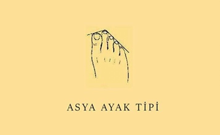 Başparmağın yanındaki parmak uzun aynı zamanda diğer üç parmak simetrik şekilde kısaysa Asya tipi ayağa sahiptir. Genelde beğenilmeyen ayak tipi olsa da bu tip ayağa sahip kişilerin lider yapısına sahip olduğu düşünülüyor.