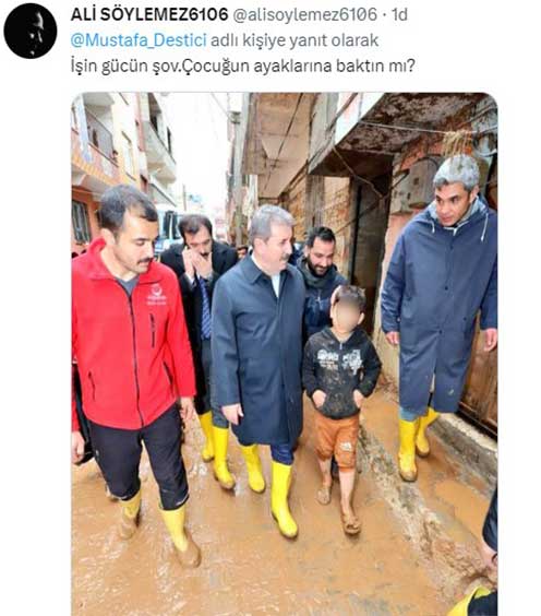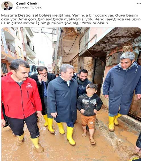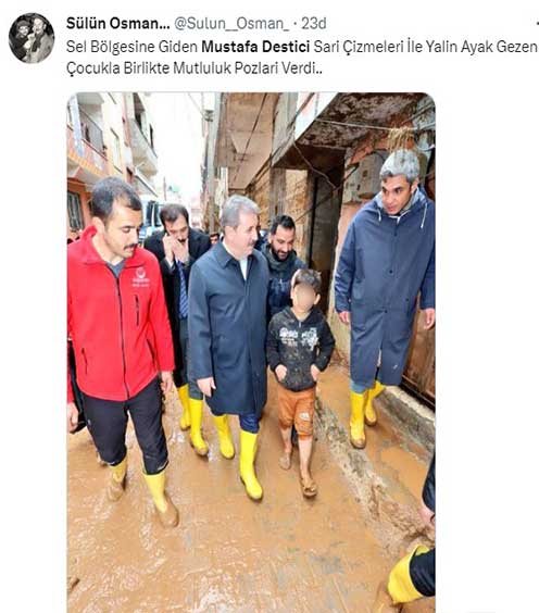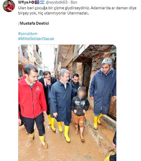 Skandal! Mustafa Destici bot giyip çıplak ayaklı çocuğu çamurda gezdirdi