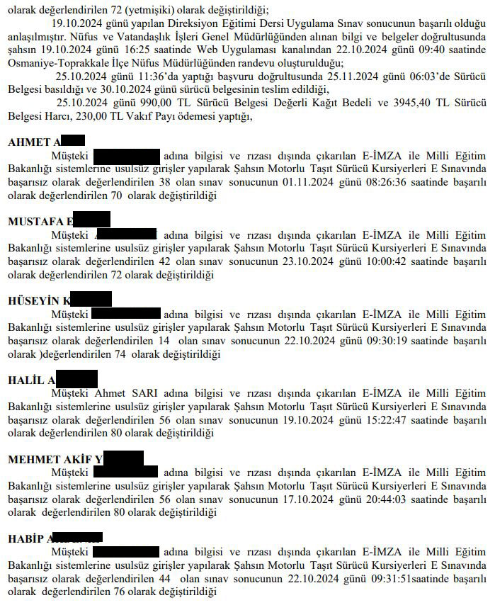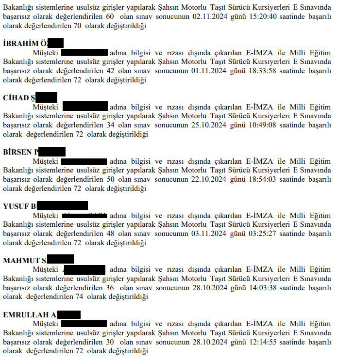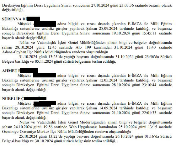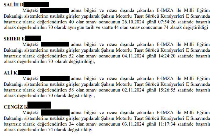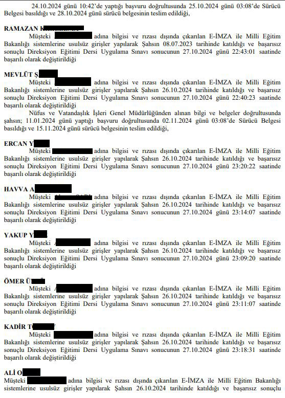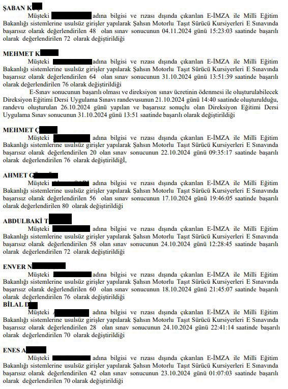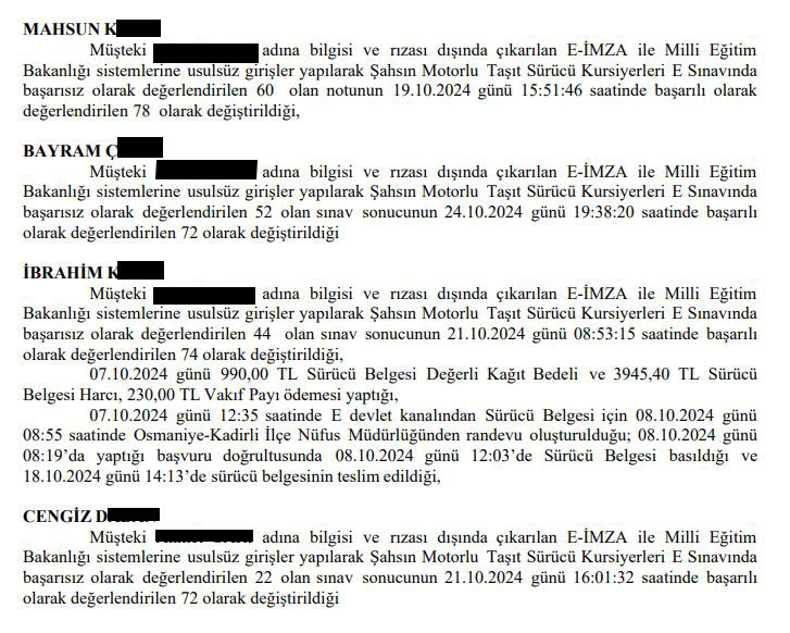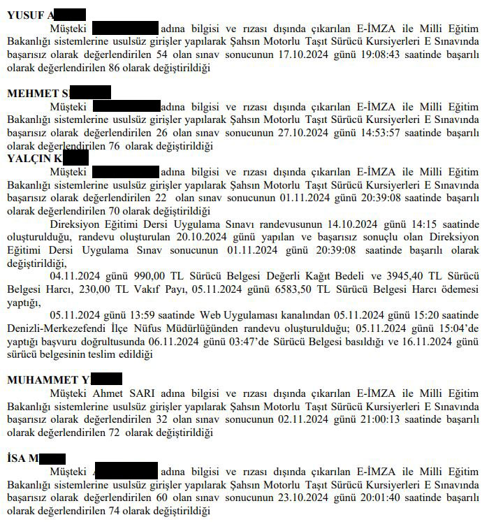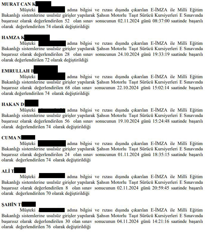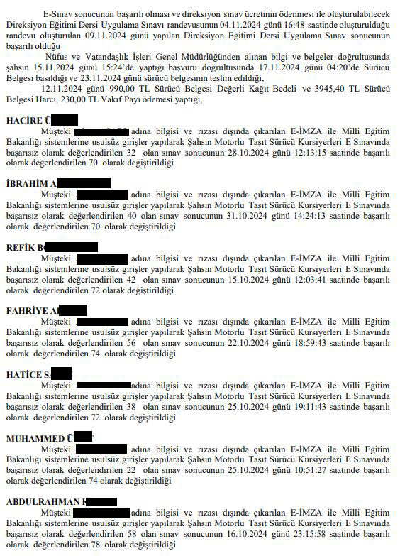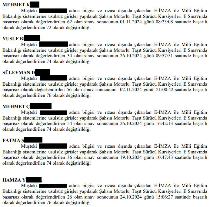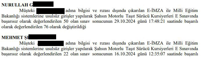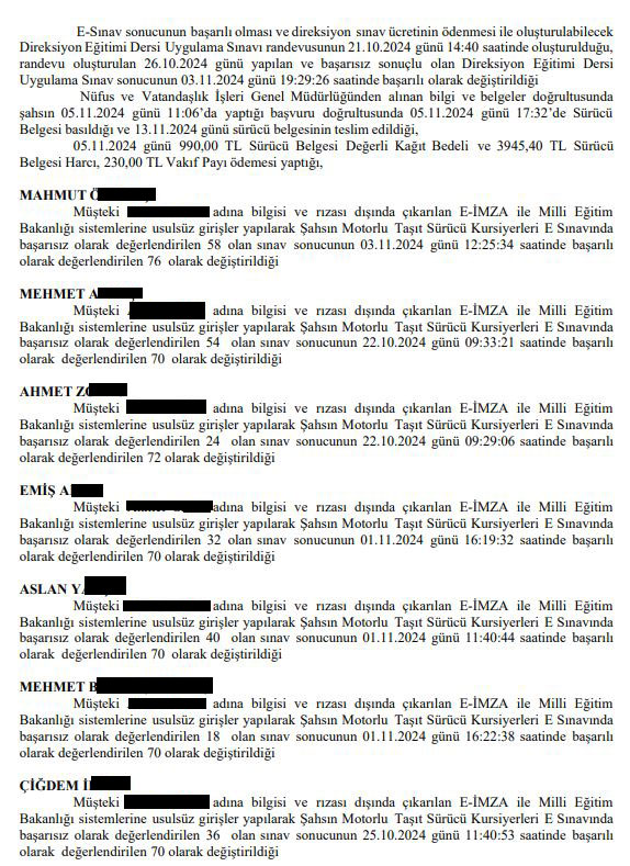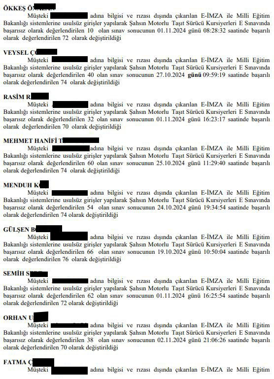 İşte ehliyet sınav sonuçları değiştirilen isimler: