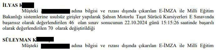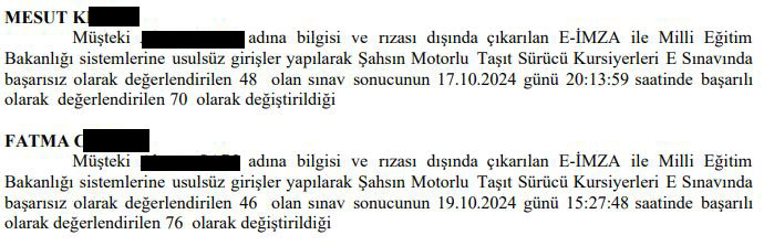 Teorik sınavdan başarısız olan sürücü adaylarının notlarının değiştirildiği ve bu yolla ehliyet kazandırıldığı tespit edildi.
