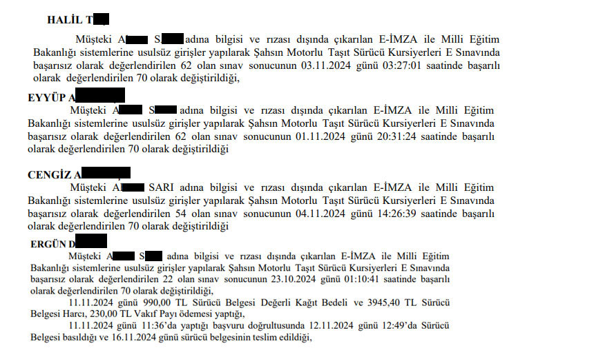 Ankara Cumhuriyet Başsavcılığınca yürütülen sahte diploma soruşturmasında ehliyet sınavı sonuçlarının değiştirildiği de ortaya çıktı.