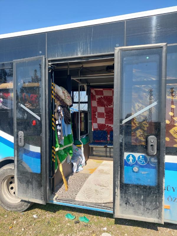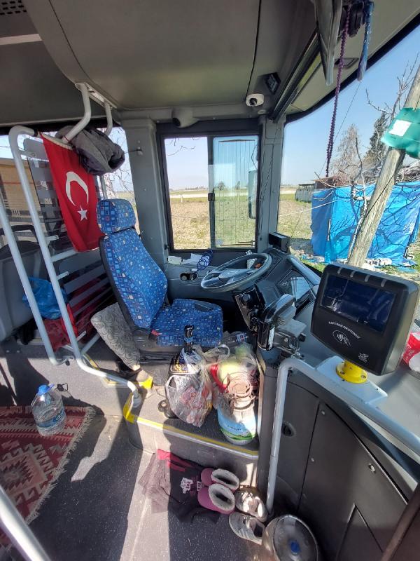 Şimdi ailesiyle halk otobüsünde yaşadıklarını belirten Akıncı, "Önceden elektrik yoktu otobüste bir şey yapamadık ama, şimdi bir düzen kurduk. Çocuklar televizyon seyrediyor, ısıtıcı var. Fazla olan birkaç koltuğu söküp bir yol açtık, şükür şu anda idare ediyoruz. Battaniye, yorgan, yastık gibi eşyaları 3-4 gün sonra, kendi malımızı çalar gibi, eve gidip hızlıca alıp çıktık. Antakya merkezden köyümüze geldik, şimdilik buradayız. Konteyner evler kuruyorlar ama köyümüzü, eşyamızı, ailemizi bırakıp gidemeyiz. Bulunduğumuz yere konteyner ev kurulursa iyi olur. Yoksa otobüste yaşamaya devam edeceğiz. Rahat değil ama idare edeceğiz, en ufak bir sallantıdan korkuyoruz, buna da şükür" dedi.