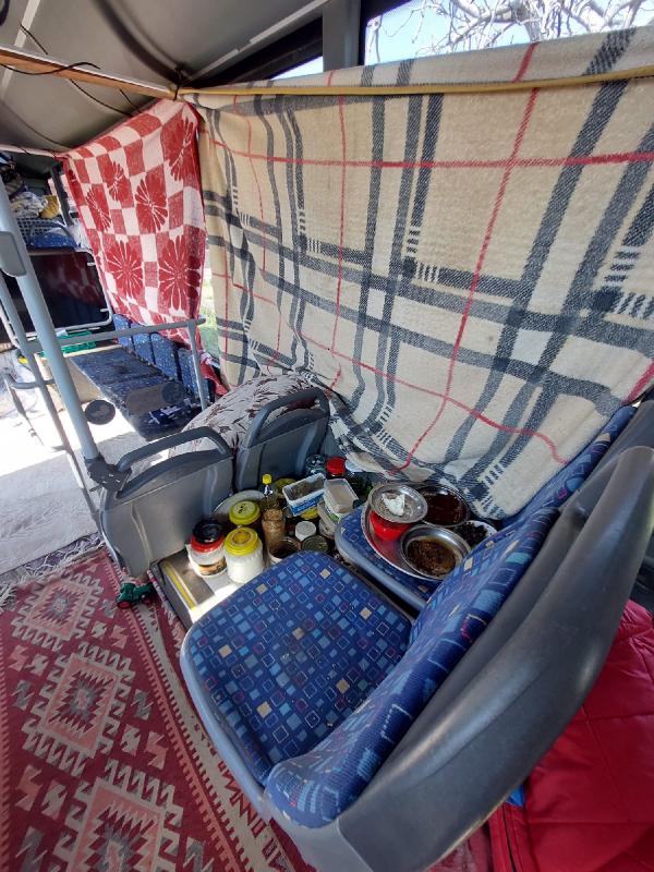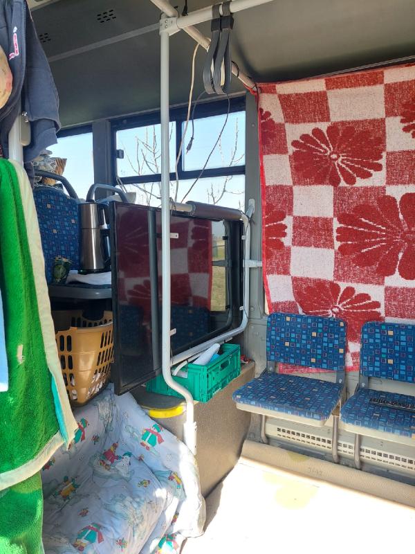 Sokakta kalmamak için 17 yıllık şoförlük yaptığı halk otobüsünü ev hale getiren Hasan Akıncı, yer yatağı için koltukları söktü, camları battaniye ile kapattı.