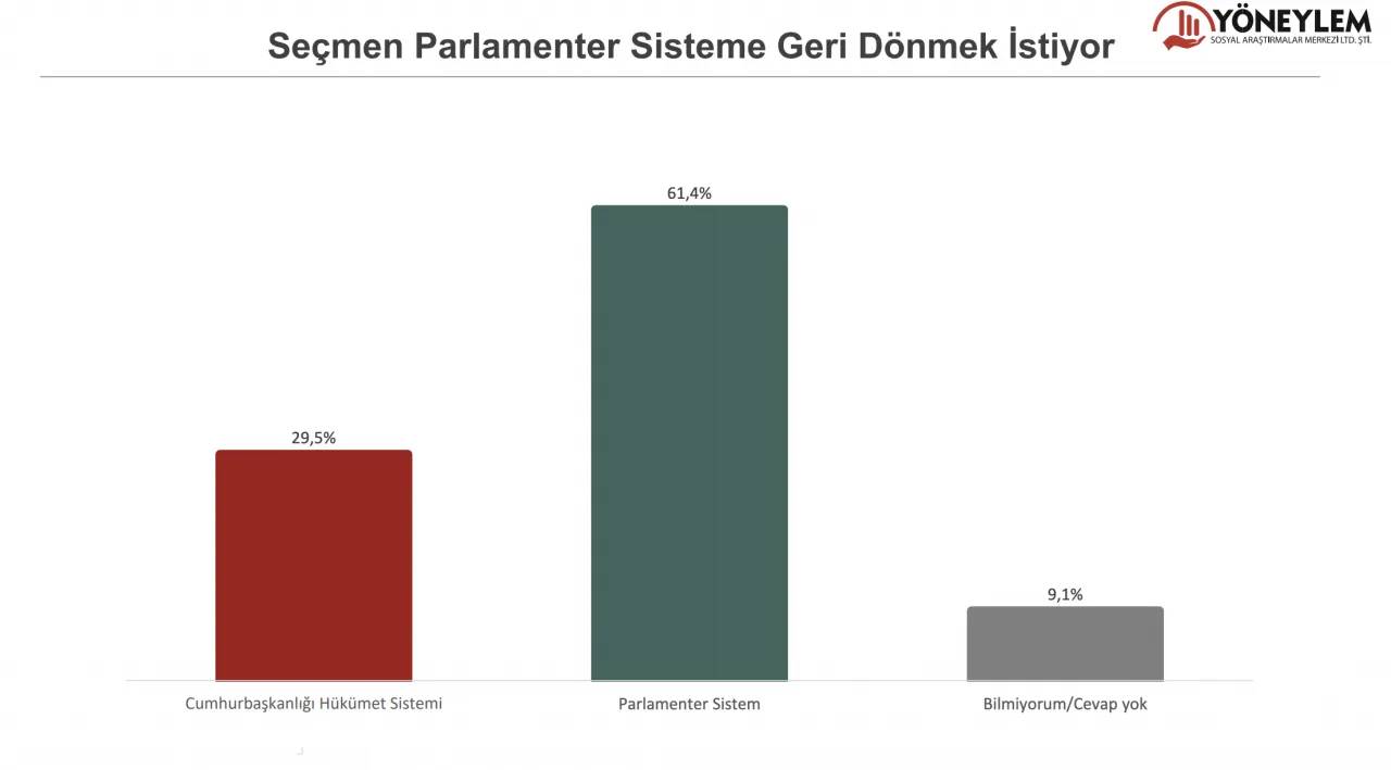 Parlamenter sisteme dönülmesini isteyenlerin oranı yüzde 61.4 olarak hesaplandı.