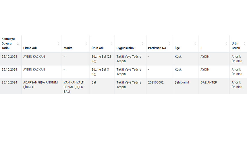 Tarım ve Orman Bakanlığı gıda testlerini sürdürüyor. Bakanlık taklit-tağşiş, sağlığı tehlikeye düşürecek gıdalar listesini yayınlamaya devam ediyor.