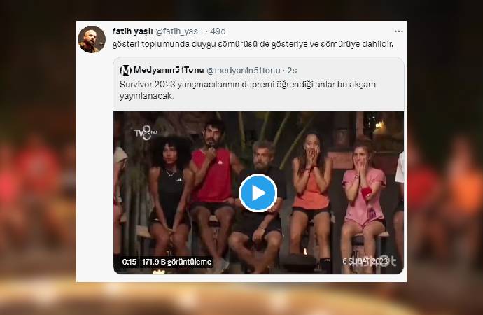Kahramanmaraş merkezli 7.7 ve 7.6'lık depremlerin ardından televizyon kanalları normal akışlarını keserek özel deprem yayınlarına geçti. Acun Ilıcalı'ya ait olan TV8 kanalı ise Survivor adlı eğlence programına devam etti.