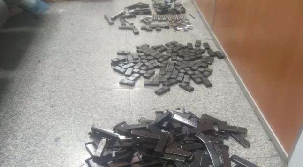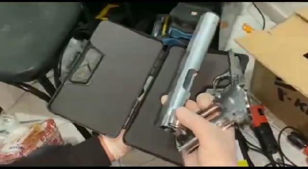 İmalathanede yapılan aramalarda 3 ruhsatsız tabanca, 91 şarjör, 25 anahtarlık şeklinde tabanca, 85 ateşleme tertibatı bulunmayan anahtarlık tabanca, 45 kurusıkı tabanca, 45 kurusıkı tabanca şarjörü, 55 tabanca gövde ve sürgüsü, 19 tabanca namlusu, silah yapımında kullanılan makineler, çok sayıda muhtelif silah parçacıkları ele geçirildi.