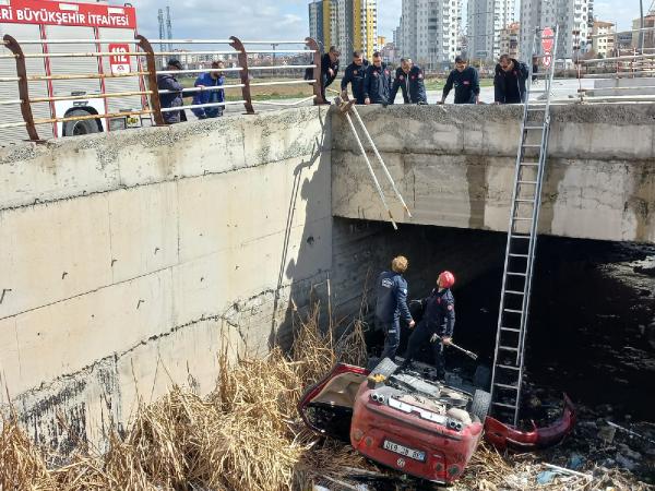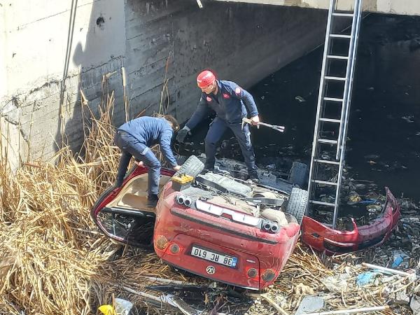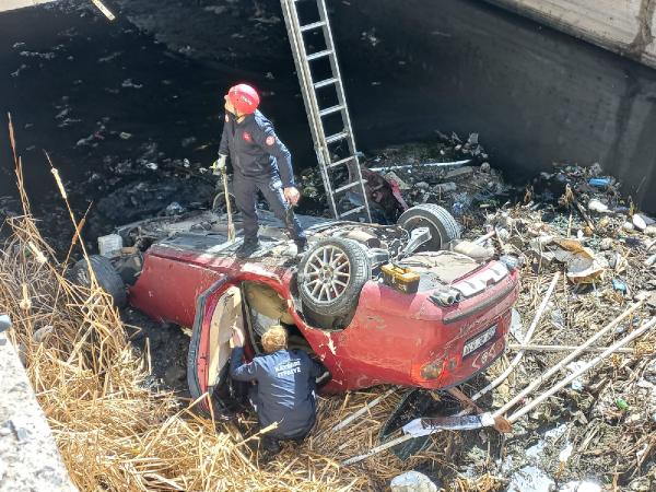 U.D.Y.’nin direksiyon kontrolünü yitirdiği otomobil, yaklaşık 5 metre yükseklikten içinde az miktarda su bulunan kanala düştü.