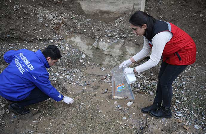 Ekipler, kanaldan ve ölü balıklardan numune aldı.
