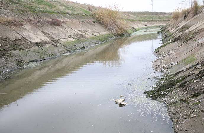 Balıkların, suyun azaldığı kanalda oksijen yetersizliği nedeniyle öldükleri tahmin ediliyor.