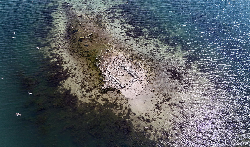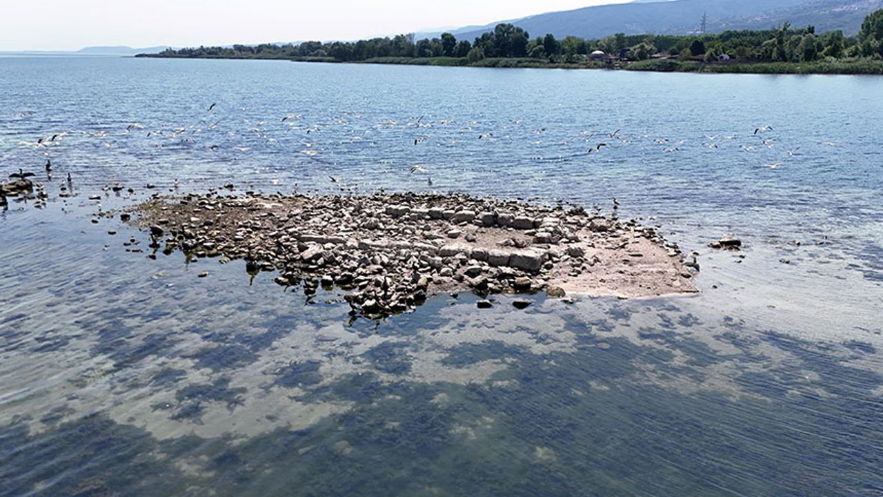 Yağışsız geçen yaz ayları ve artan sıcaklıkların etkisiyle su seviyesi geriledi. Kotun 29,70 metreye kadar gerilediği gölde, son yılların en düşük seviyelerinden biri yaşanırken gölde bulunan tarihi yapı da gün yüzüne çıktı.