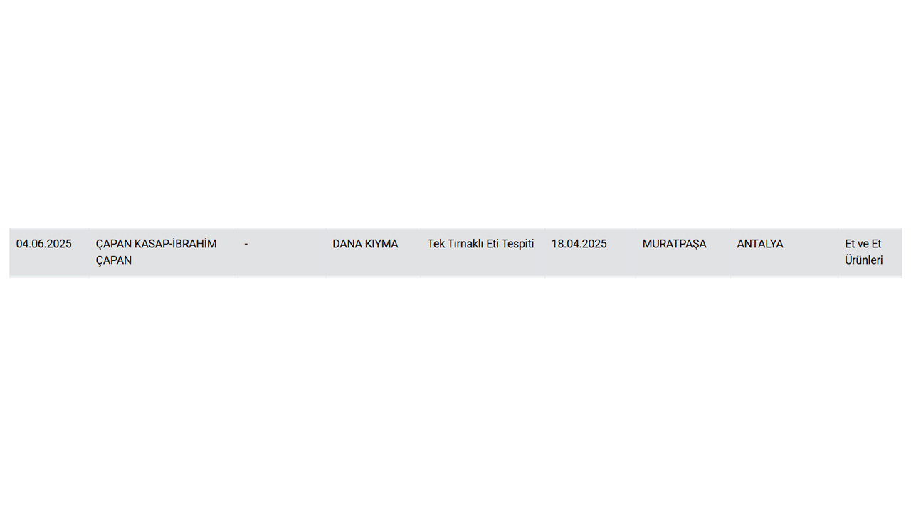 Birçok vatandaş tarafından listede hangi ürünlerde 'tek tırnaklı eti'nin tespit edildiği araştırılıyor.