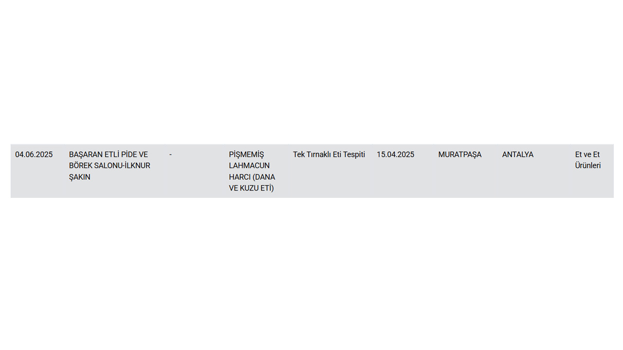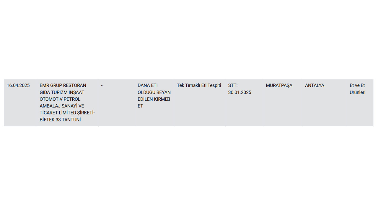 İşte, 'Sağlığı Tehlikeye Düşürecek Gıdalar' listesinde 'tek tırnaklı eti' tespit edilen firmalar...
