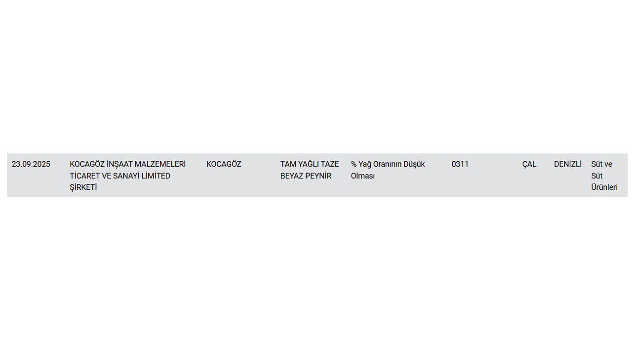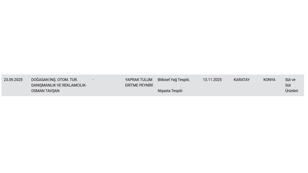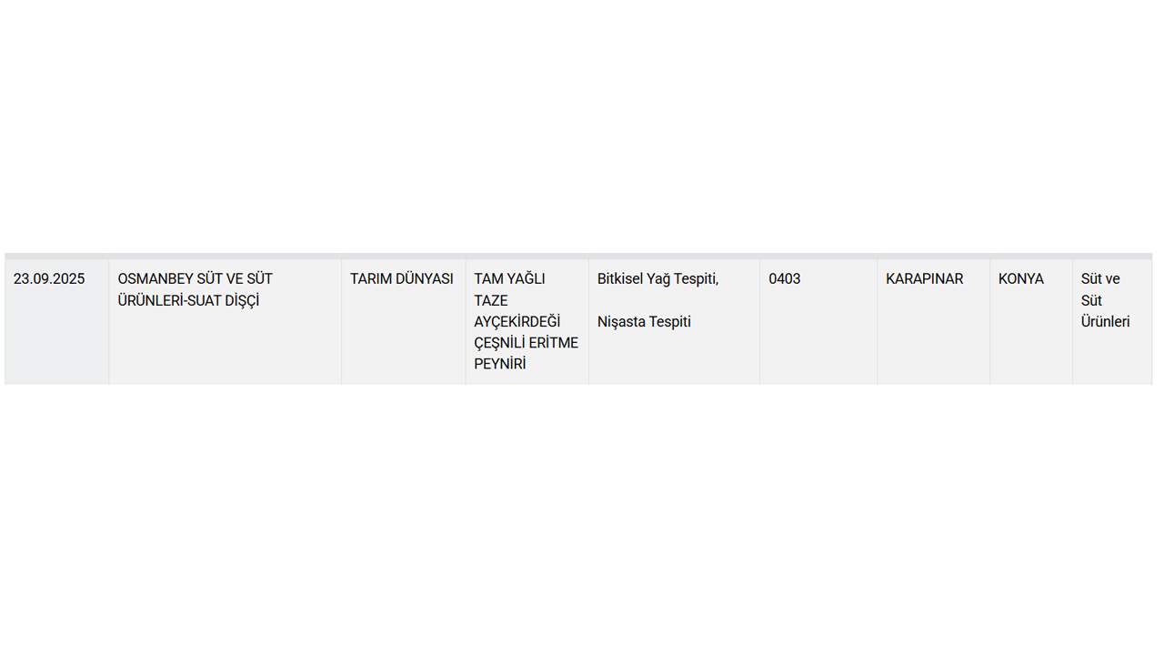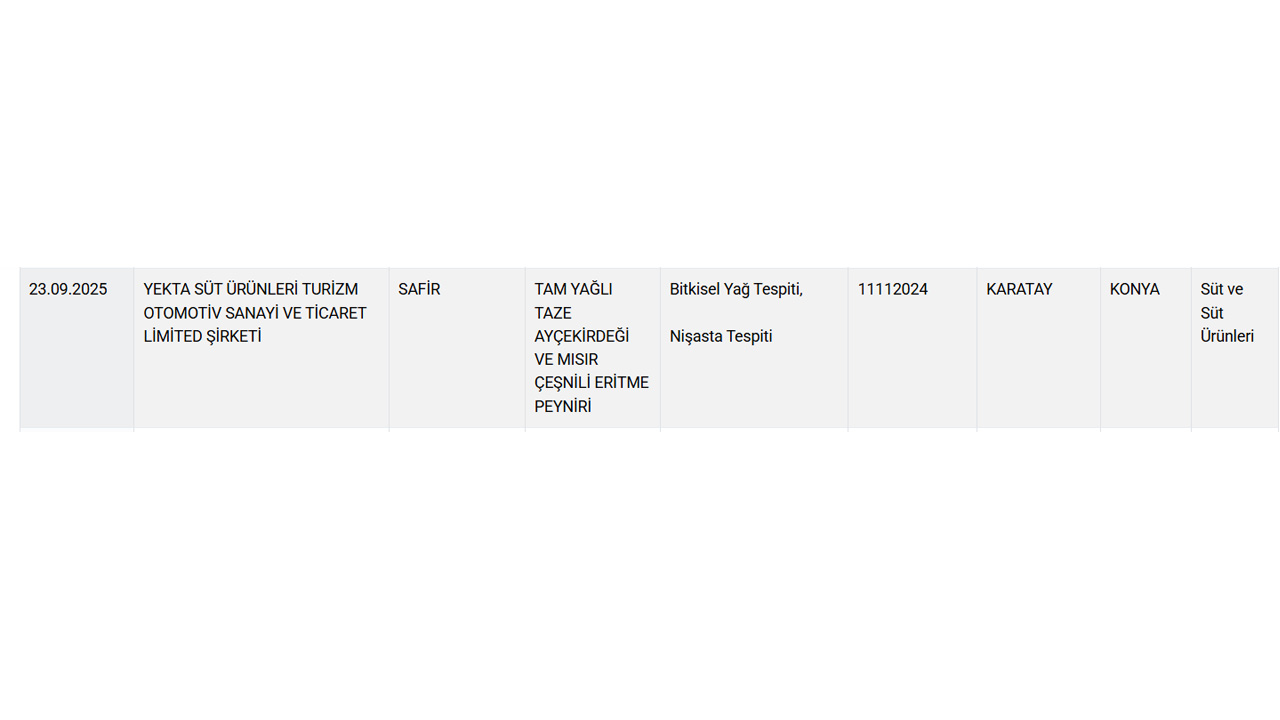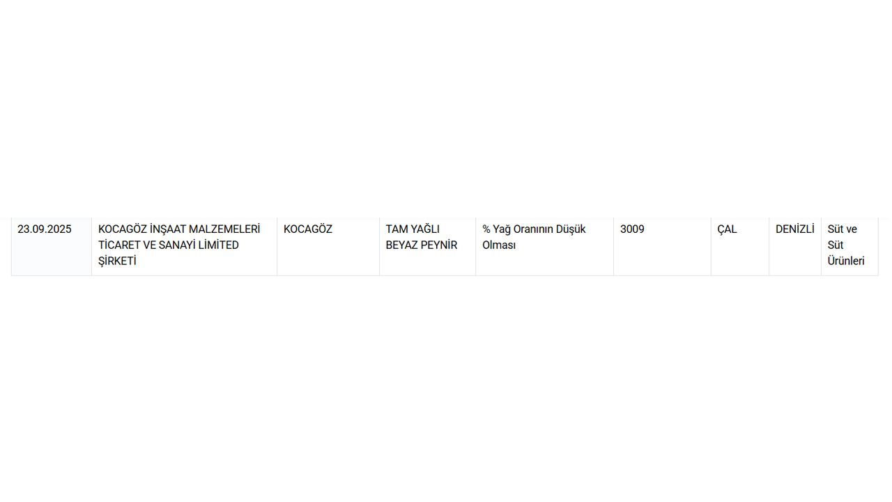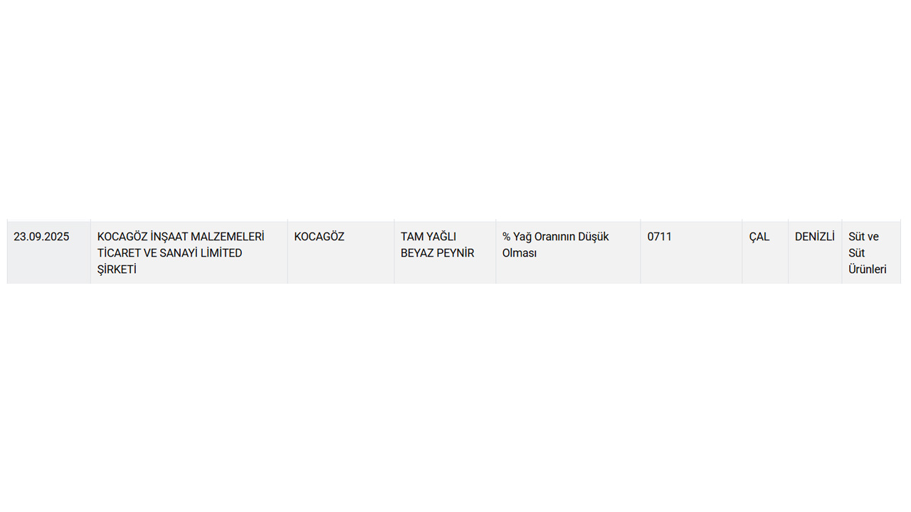 23 Eylül’de listeye birçok peynir markası eklendi.