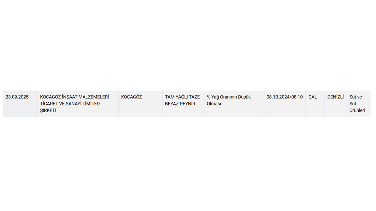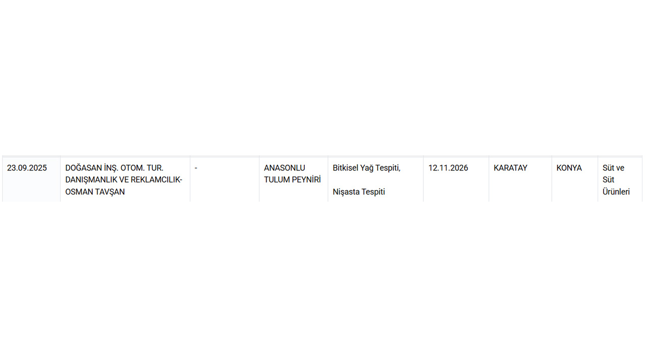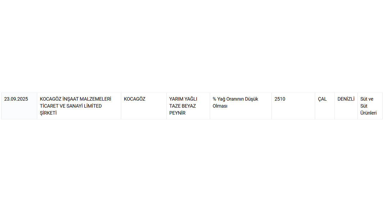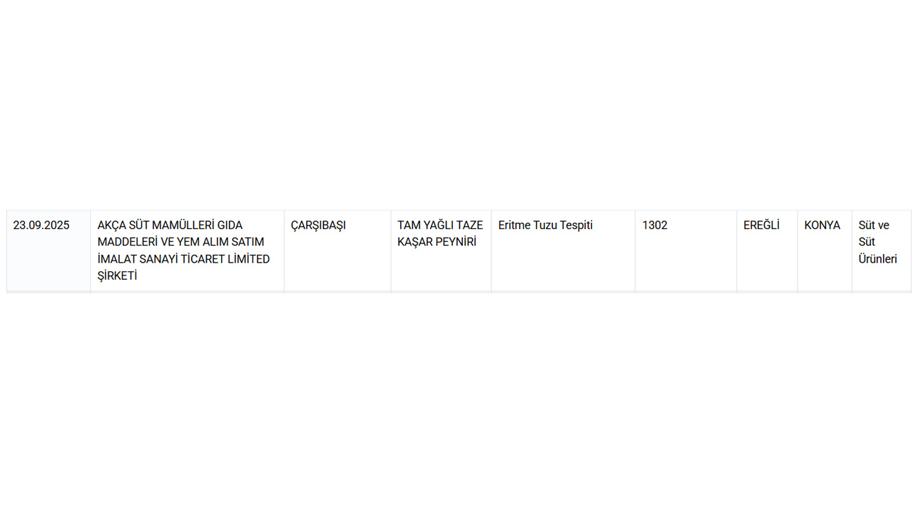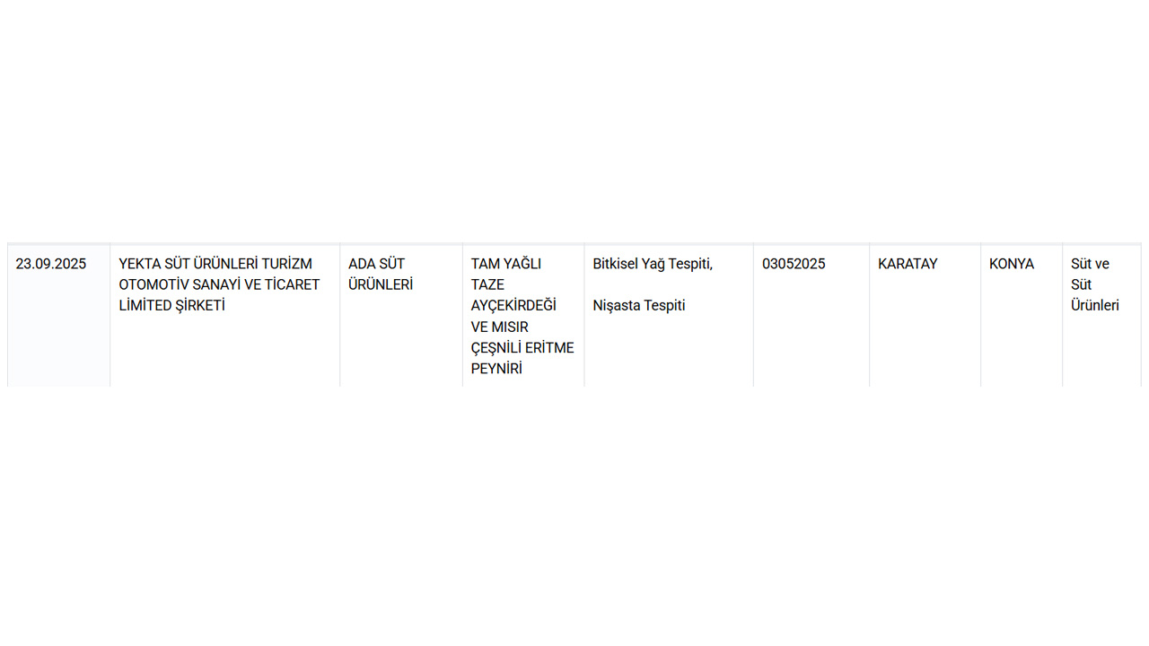 23 Eylül’de listeye birçok peynir markası eklendi.