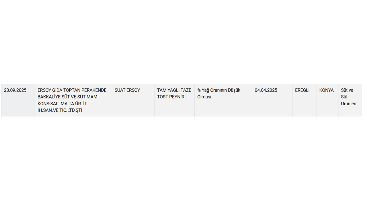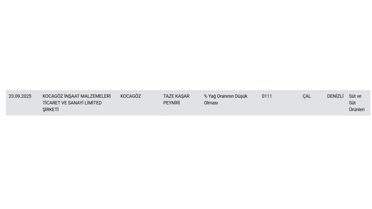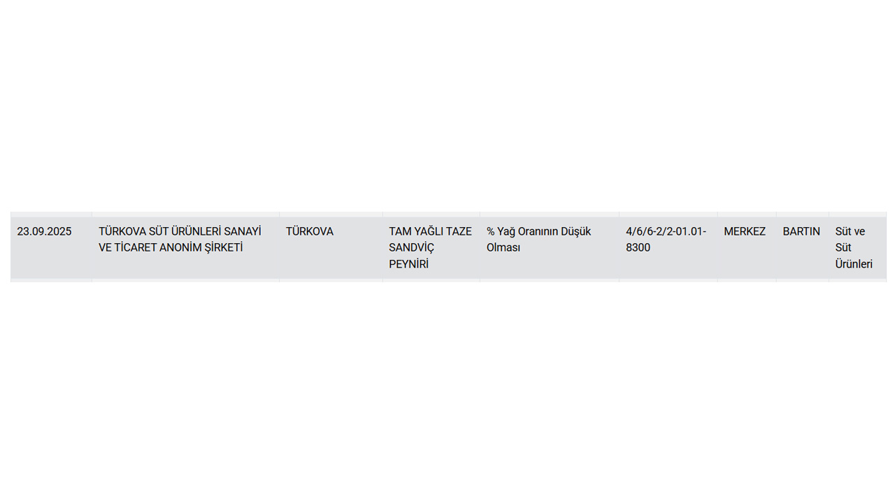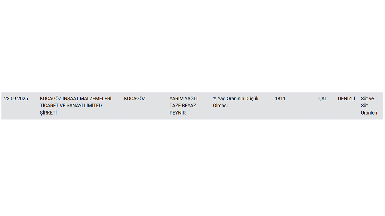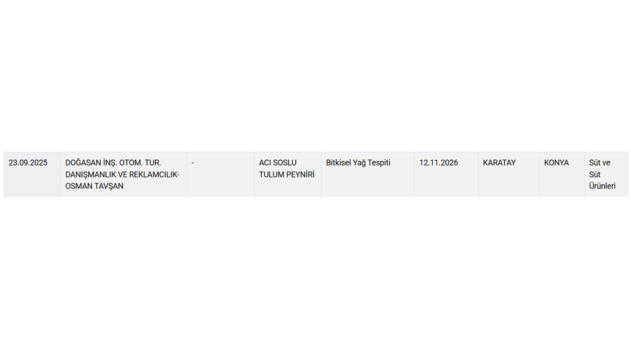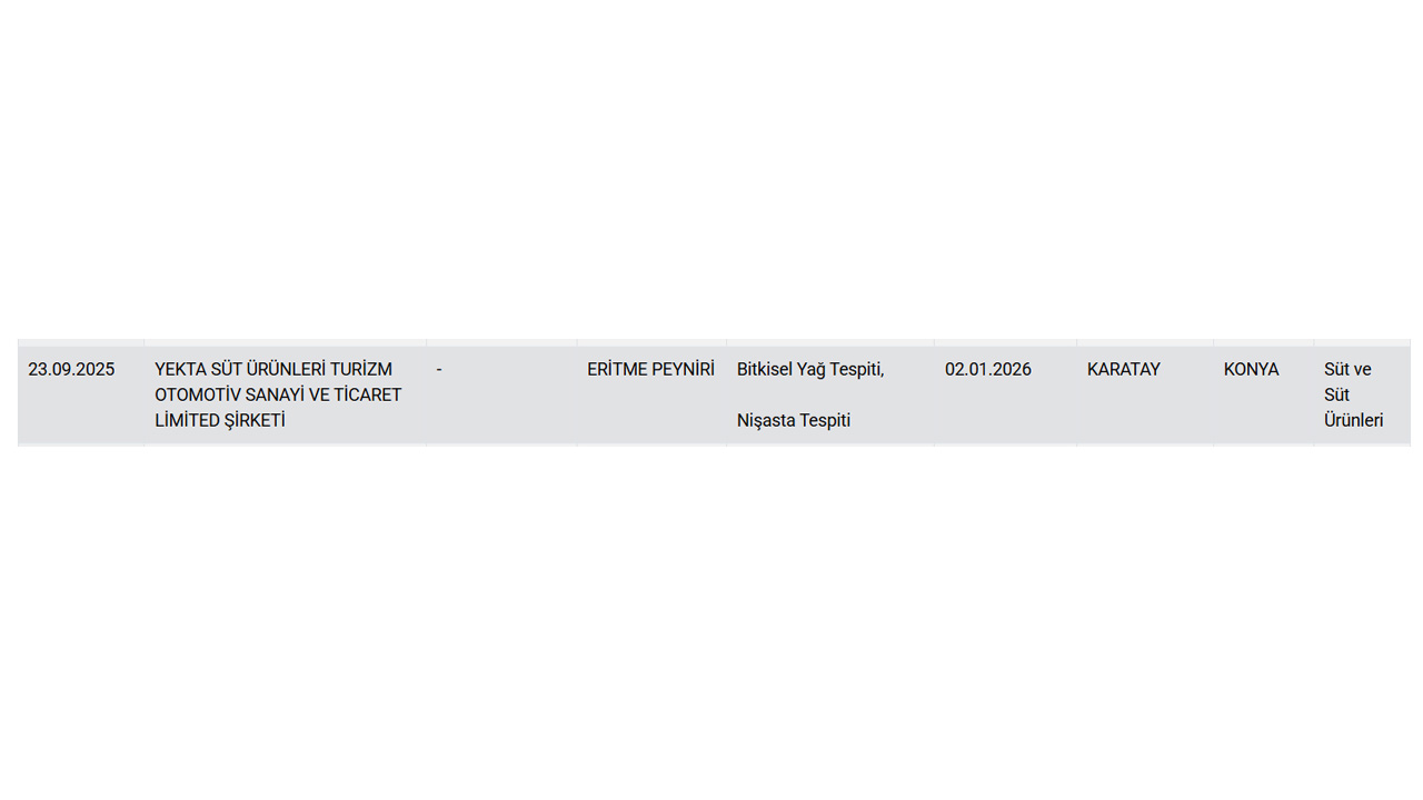 23 Eylül’de listeye birçok peynir markası eklendi.