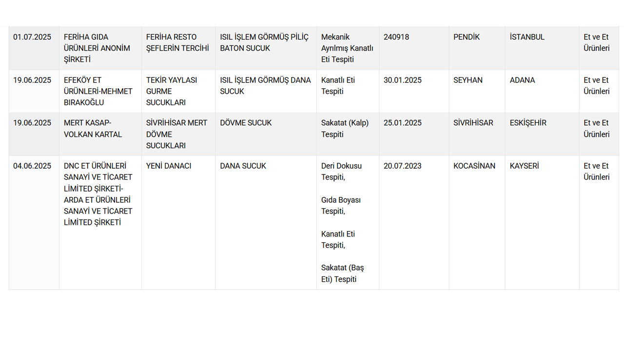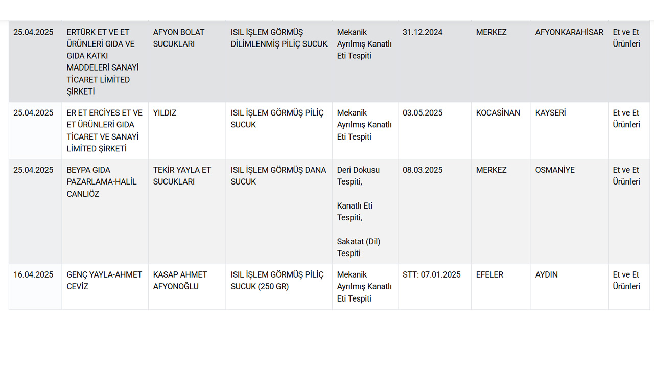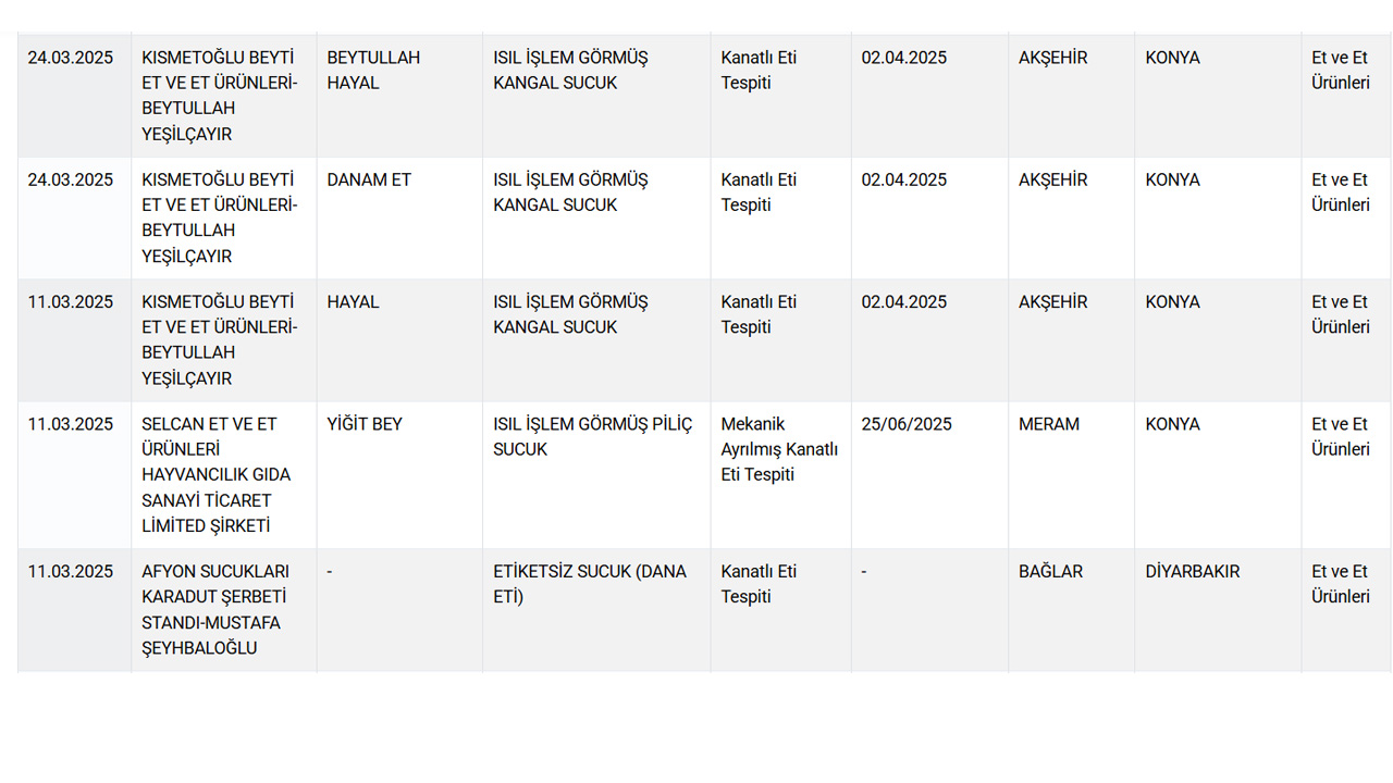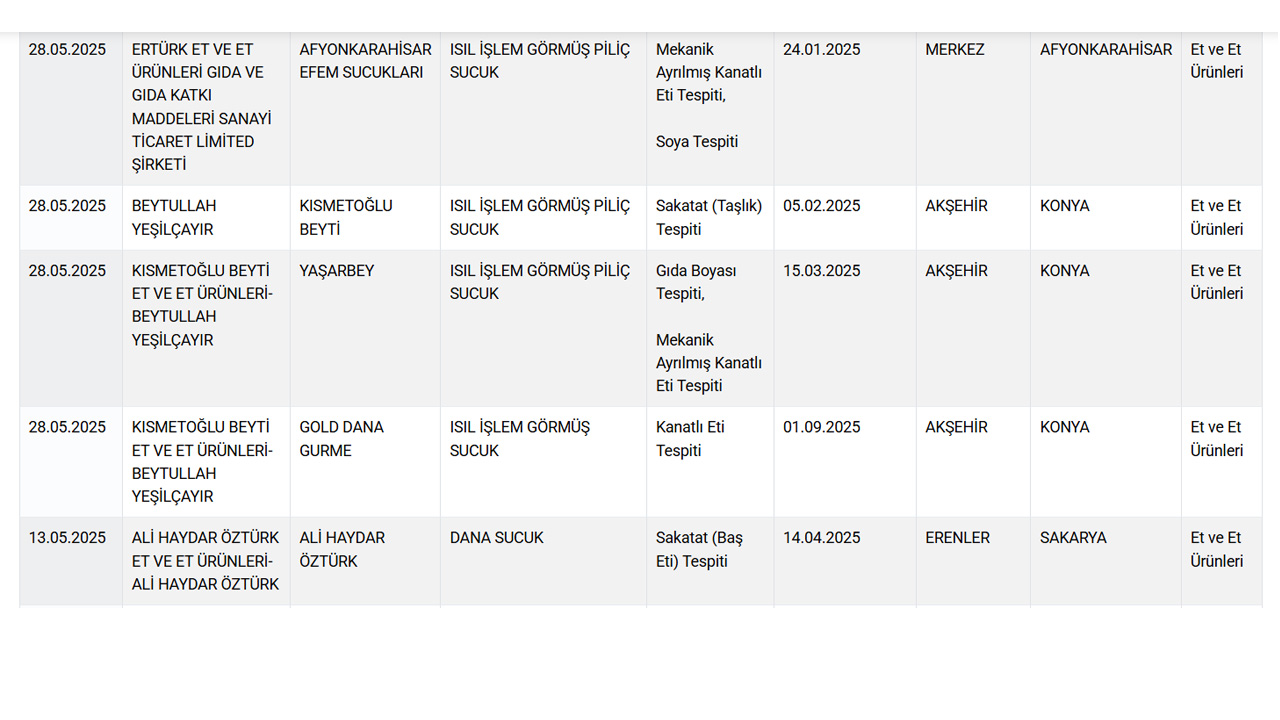 İşte, ‘Taklit Veya Tağşiş Yapılan Gıdalar’ listesindeki sucuk markaları...