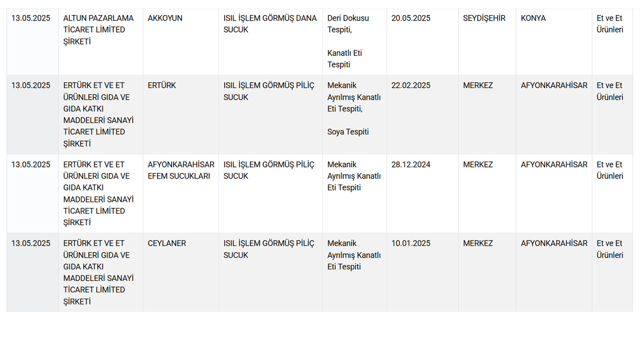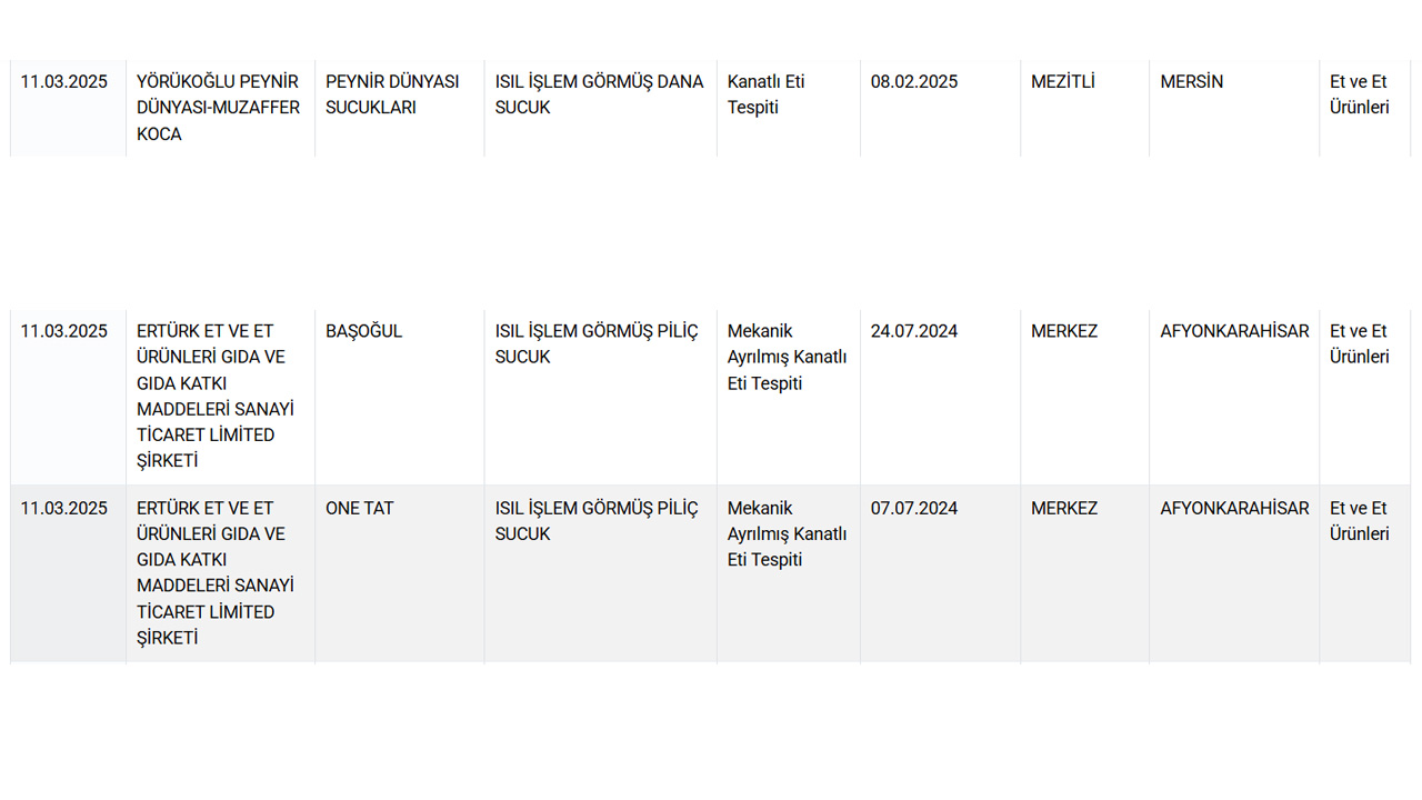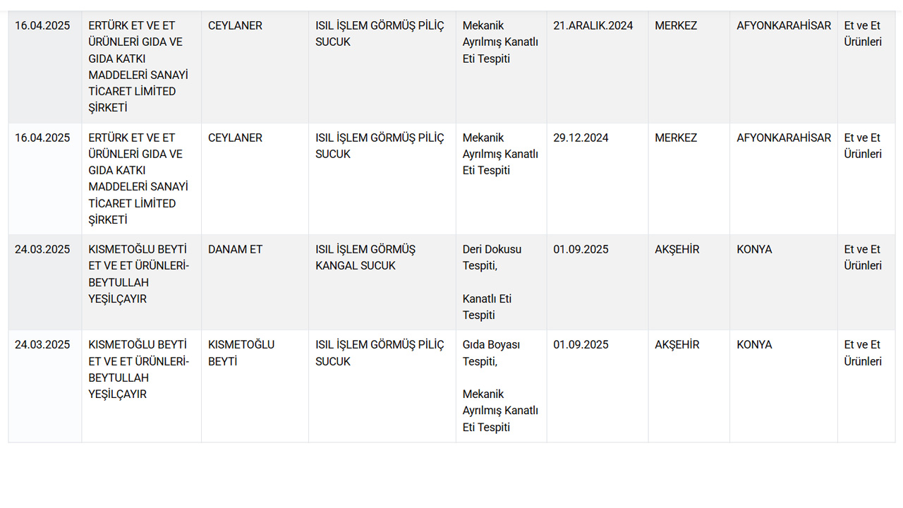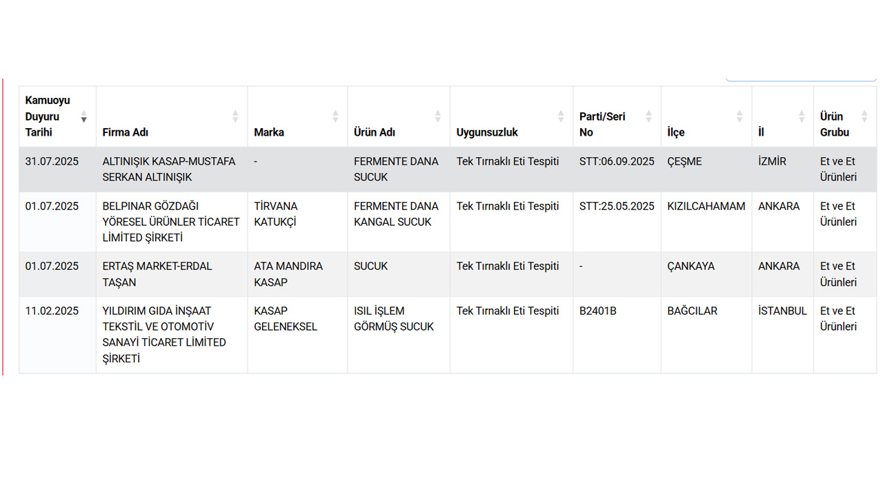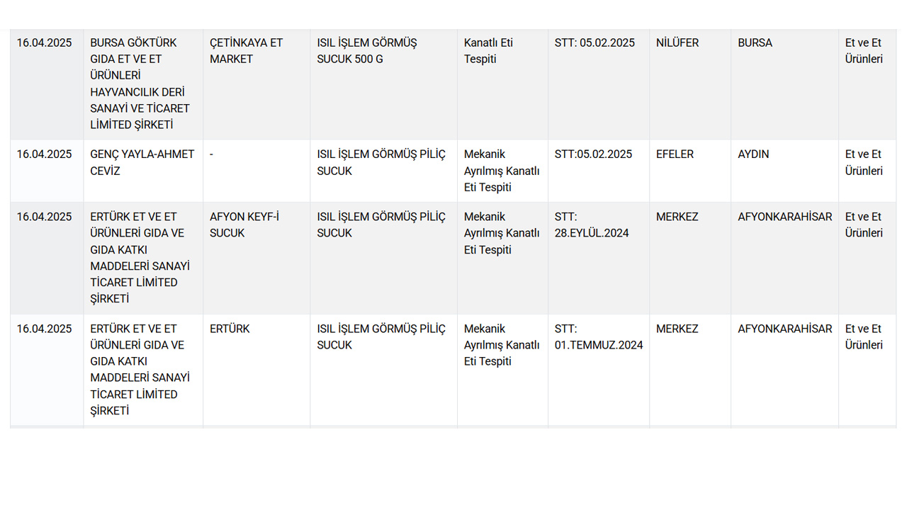 İşte, ‘Taklit Veya Tağşiş Yapılan Gıdalar’ listesindeki sucuk markaları...