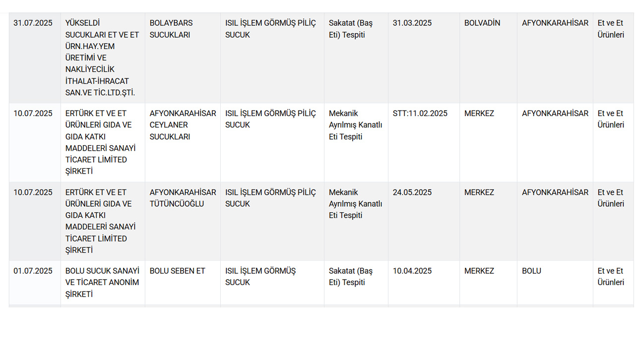 Söz konusu listelere eklenen sucuk markaları şaşkınlık yarattı.