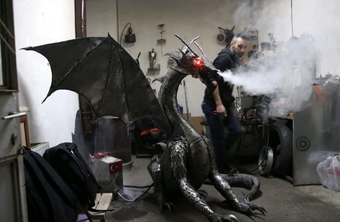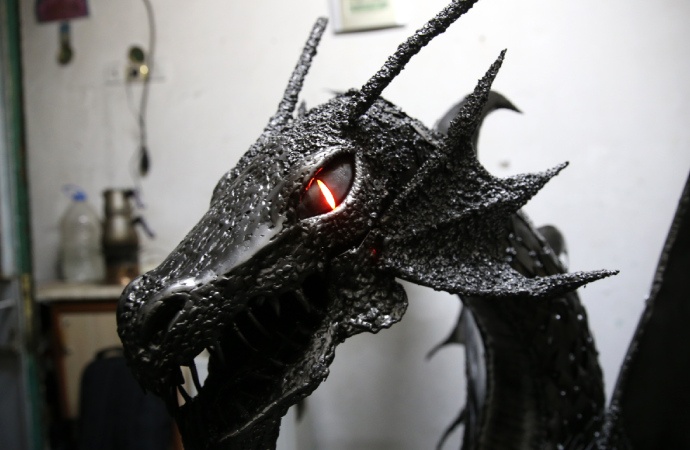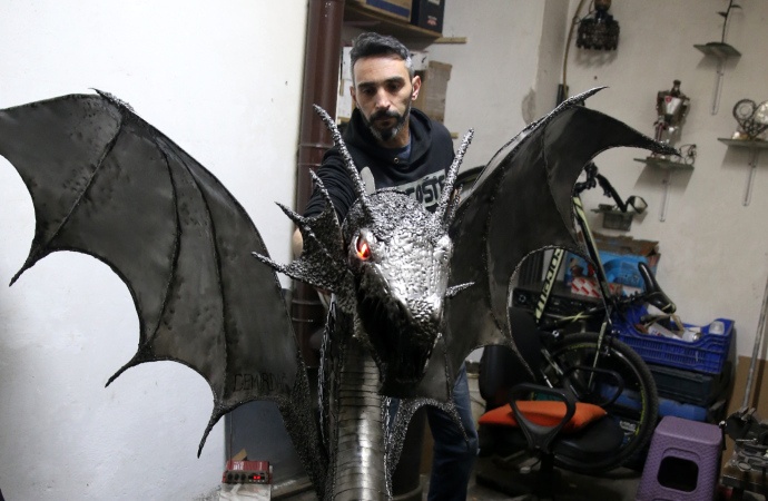 Selçuklu Mahallesi'nde kaynak ustalığı yapan meslek lisesi mezunu 37 yaşındaki İbrahim Doğan, metal malzemelerin yanı sıra hurda parçalar da kullanarak yaklaşık 4 ayda 160 santimetre boyunda ve yaklaşık 80 kilo ağırlığında "ejderha" yaptı.