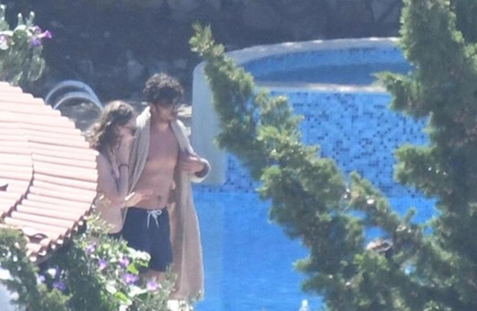 Ardından nişanlı çiftin yanına Serkan Keskin (43) ve sevgilisi Meriç Aral (32) gelmişti. İkili, tatilde objektiflere böyle yansımıştı.