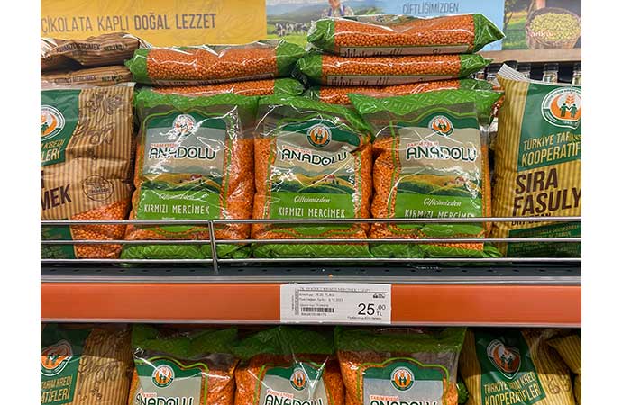 Bir kilo mercimek 25 TL'den 21 lira 90 kuruşa düştü.