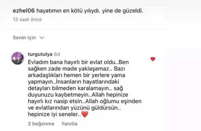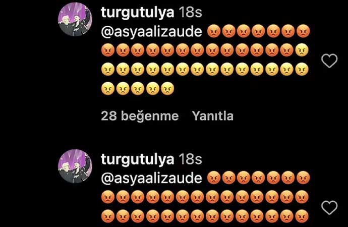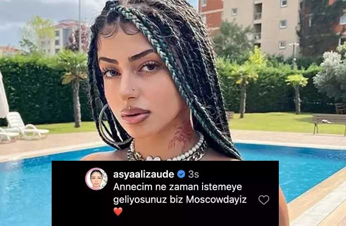 Alizade "Anneciğim ne zaman istemeye geliyorsunuz? Biz Moskova'dayız." yorumundan sonra da Ulya Hanım'dan olumsuz not aldı. Oğluyla aşk yaşadığı ihtimali karşısında deliye dönen Ulya Hanım sinirli emojilerden oluşan yorumlar yağdırdı.