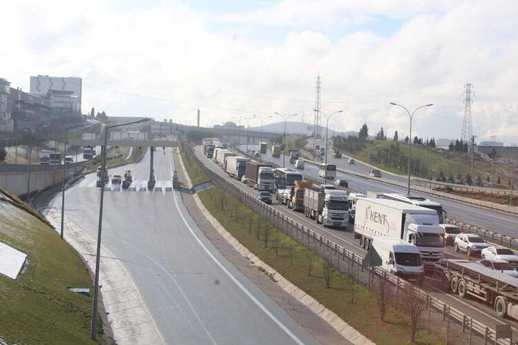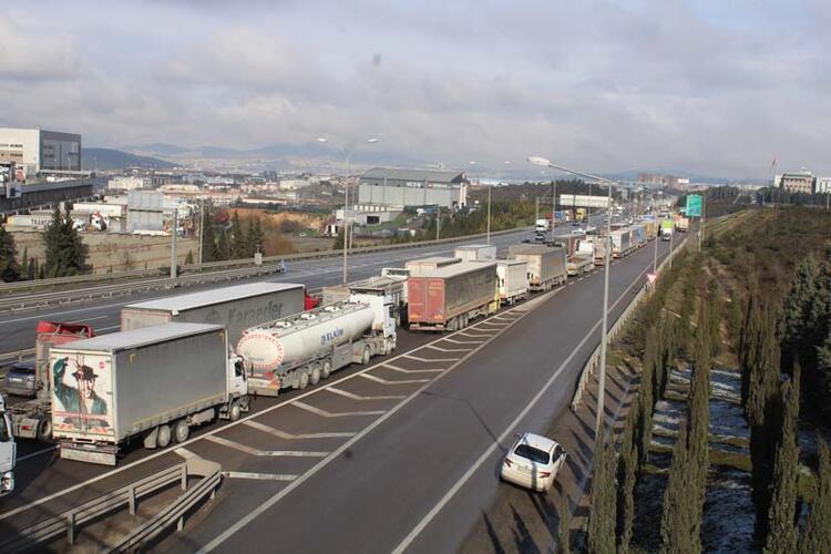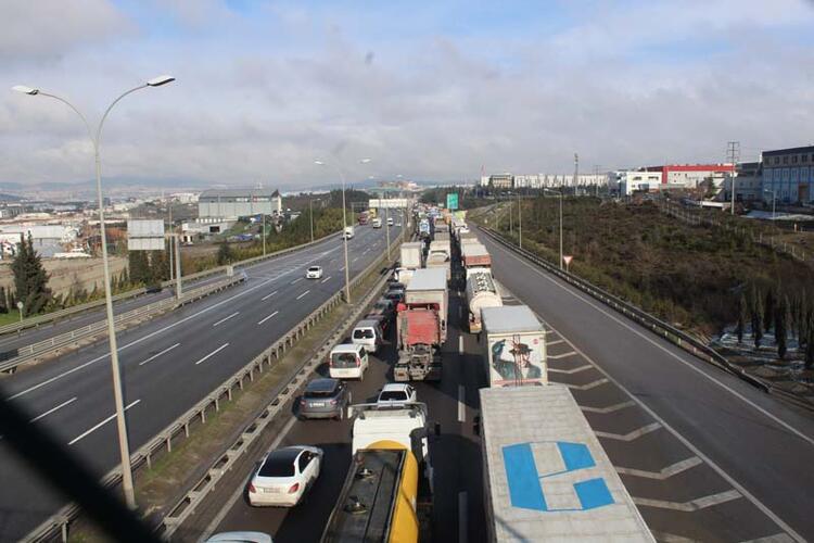 TEM'de 8 kilometrelik TIR ve kamyon kuyruğu