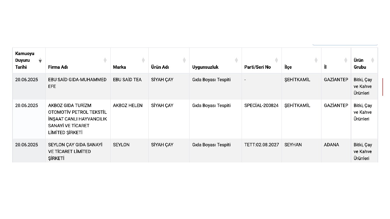Söz konusu listeye 20 Haziran’da eklenen çay markaları şaşkınlığa neden oldu.