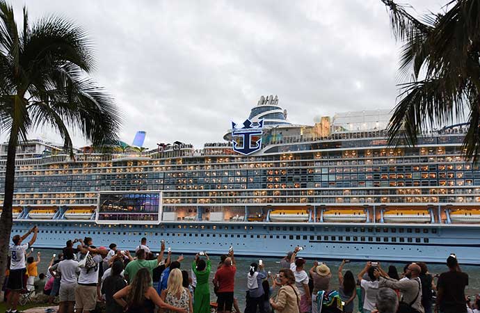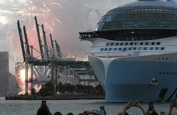 ABD'nin Miami Limanı'ndan ilk kez yola çıkan gemi, Lionel Messi ve takım arkadaşlarının yardımıyla Salı günü vaftiz edildi. Finlandiya'da bir tersanede 900 günde inşa edilen dev gemi, 7 bin 600 yolcu ve 2 bin 350 kişilik mürettebatı barındırıyor. Tüm biletleri tükenen gemi, en son teknolojiyle donatıldı. Yaklaşık 2 milyar dolarlık devasa gemide 50 müzisyen ve komedyenin yanı sıra 16 kişilik bir orkestra da yer alıyor.