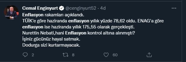 TÜİK'in enflasyon rakamlarına tepki yağıyor! "Nebati hani kontrol altındaydı?"