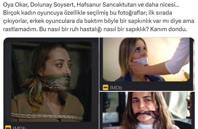 Birçok sosyal medya kullanıcısı, Türk kadın oyuncuların IMDb profil fotoğraflarının rahatsız edici görsellerden oluştuğunu fark etti.