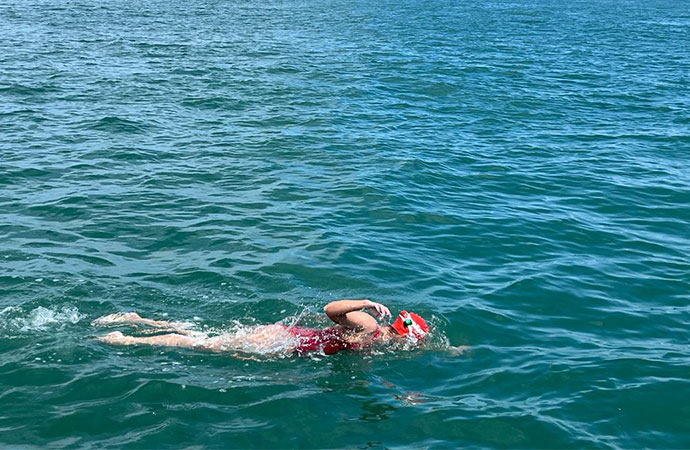 Deniz Kayadelen, en büyük hayallerinden biri olan Manş Denizi'ni geçmek için dün gece yarısı İngiltere'nin Dover kasabasına bağlı Samphire Hoe kıyılarından yüzmeye başladı. 16 derecelik deniz suyunda aralıksız olarak yüzen Kayadelen, 15 saat 8 dakika sonra Fransa'nın Strouanne plajına ulaştı. Dalgalara karşı koyarak yaklaşık 57 kilometre yüzen başarılı yüzücü, Manş Denizi'ni geçen kadınlarda 5'inci Türk, genelde ise 17'nci yüzücü oldu.