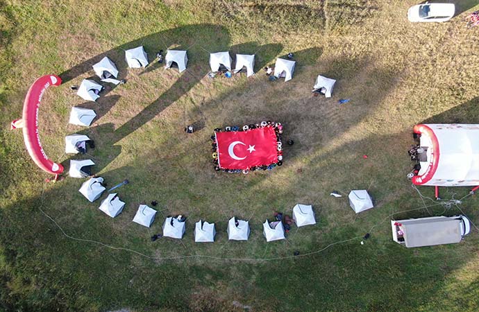 Düzce'de 29 Ekim Cumhuriyet Bayramı nedeniyle 60 öğrenci Türk bayrağı açarak kutlama yaptı.