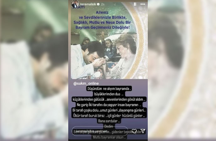 Kerem Alışık: Düşündüm ne alıyım bu bayramda? Büyüklerimden dua, küçüklerimden gülücük, sevenlerimden gönül aldım. Ne garip iki tarafını da yaşıyor insan bayramın. Bir tarafı coşku dolu; umut günleri, dayanışma günleri... Öbür tarafı buruk biraz; içli günler, hüzünlü günler... Bana sordular, dedim; "Ben böyle günlere giderim, gidenler benden gider." Mutlu bayramlar olsun.