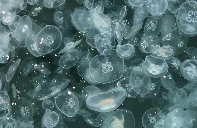 Marmara Denizi'nin önemli sorunlarından, Atlantik Okyanusu göçmeni istilacı bir tür olan ay denizanası, bugünlerde yine çokça görülmeye başlandı. Marmara Denizi, yarı saydam, genellikle yaklaşık 25-40 santim çapında ve tepesinden kolayca görülebilen dört at nalı şeklindeki gonadları (üreme hücresi) ile tanınabilen ay denizanalarının istilasına uğradı.