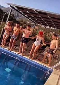 Parti yapmak için toplanan 14 kişinin havuzda yüzüp, müzik eşliğinde dans ettiği anlar ise şaşkınlık yarattı.