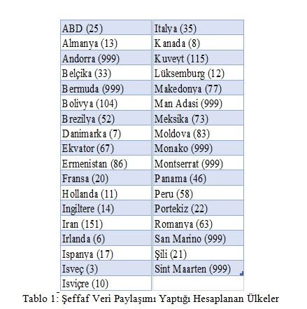 ŞEFFAF VERİ PAYLAŞAN ÜLKELER
