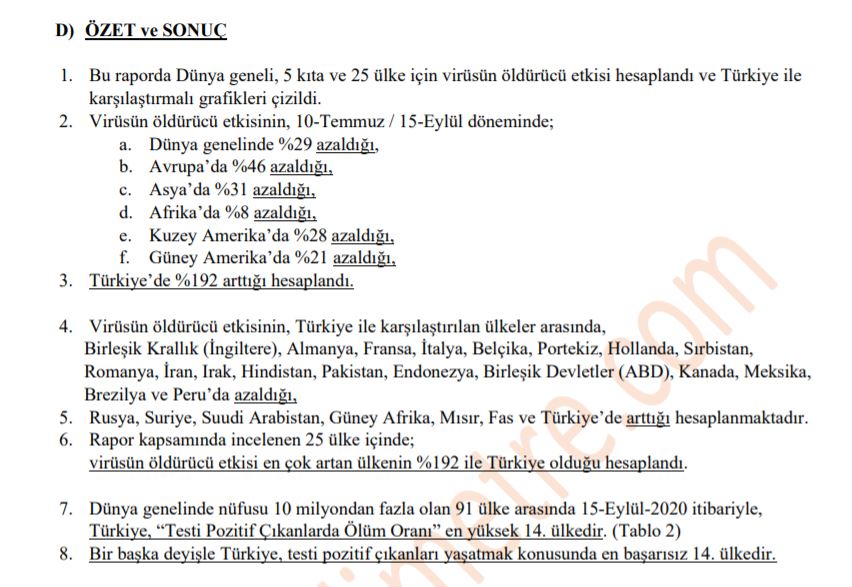 Bu dönemde virüsün öldürücü etkisi Türkiye’de %192 artarken, Dünya genelinde %29 azalıyor.