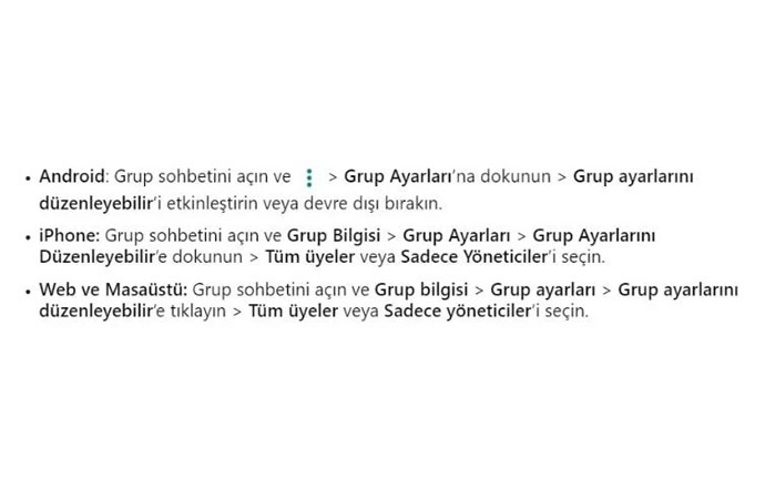 Grup sohbetleri için ise şu, yukarıdaki adımlar takıp edilmeli.