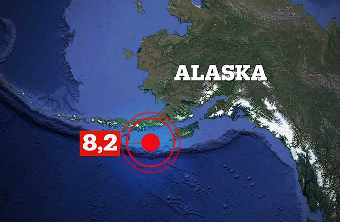 - ABD Jeolojik Araştırmalar Merkezi (USGS), Alaska açıklarında 8,2 büyüklüğünde deprem meydana geldiğini duyurdu. Yerin 32 kilometre altında kaydedilen depremin ardından can ya da mal kaybı yaşanmadı.