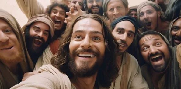 Yapay zeka tarafından oluşturulan fotoğrafın adı "Son Akşam Yemeği Selfie Çubuğu".