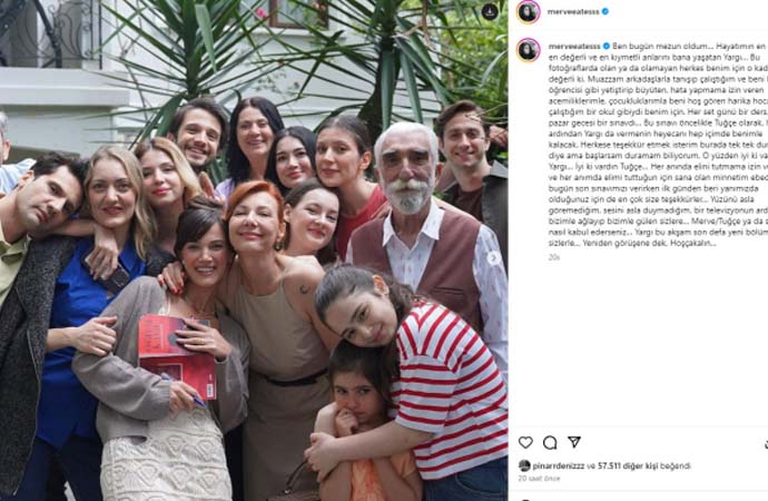 Dizide polis memuru Tuğçe'yi oynayan ve geçtiğimiz bölümlerde cinsel istismara uğradığı sahnelerle adından söz ettiren Merve Ateş, vedasında şu ifadeleri kullandı: "Ben bugün mezun oldum… Hayatımın en güzel, en değerli ve en kıymetli anlarını bana yaşatan Yargı… Bu fotoğraflarda olan ya da olamayan herkes benim için o kadar değerli ki. Muazzam arkadaşlarla tanışıp çalıştığım ve beni bir öğrencisi gibi yetiştirip büyüten, hata yapmama izin veren acemiliklerimle, çocukluklarımla beni hoş gören harika hocalarla çalıştığım bir okul gibiydi benim için. Her set günü bir ders, her pazar gecesi bir sınavdı… Bu sınavı öncelikle Tuğçe olarak, hemen ardından Yargı da vermenin heyecanı hep içimde benimle kalacak. Herkese teşekkür etmek isterim burada tek tek dursun diye ama başlarsam duramam biliyorum. O yüzden iyi ki vardın Yargı… İyi ki vardın Tuğçe… Her anında elini tutmama izin verdiğin ve her anımda elimi tuttuğun için sana olan minnetim ebedi ama bugün son sınavımızı verirken ilk günden beri yanımızda olduğunuz için de en çok size teşekkürler… Yüzünü asla göremediğim, sesini asla duymadığım, bir televizyonun ardından bizimle ağlayıp bizimle gülen sizlere… Merve/Tuğçe ya da siz nasıl kabul ederseniz… Yargı bu akşam son defa yeni bölümü ile sizlerle… Yeniden görüşene dek, Hoşça kalın…"