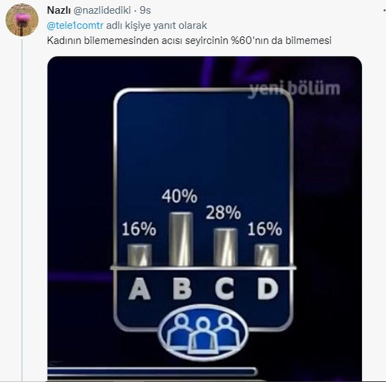 Hem seyircilerin hem de yarışmacının soruyu bilememesi ne şaşıran yurttaşlar sosyal medyada tepkilerini dile getirdi.