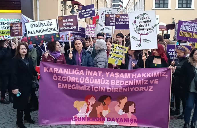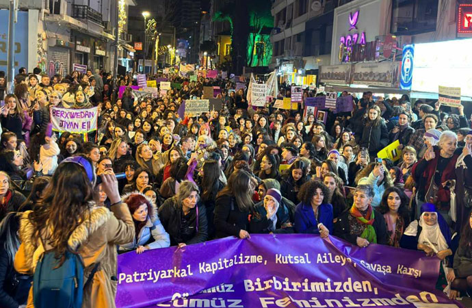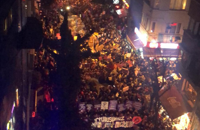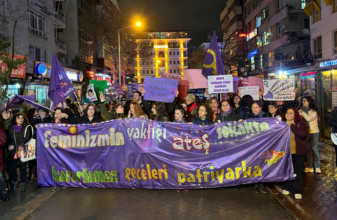 Türkiyenin dört bir yanından kadınlar 8 Mart Dünya Emekçi Kadınlar Günü için düzenlenen Feminist Gece Yürüyüşü'ne katıldı. Yasak ve baskıları dinlemeyen kadınlar Türkiye'nin her ilinde alanları doldurdu.