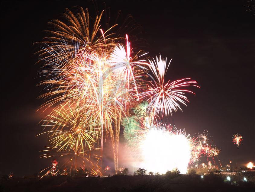Endonezya'nın Bali adasında yeni yılın ilk saniyeleri, Garuda Wisnu Kencana kültürel parkında havai fişek gösterileri ile kutlandı.