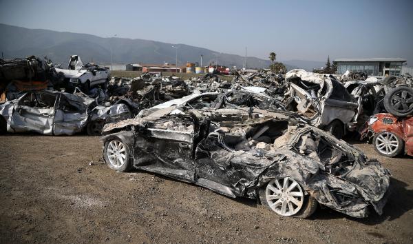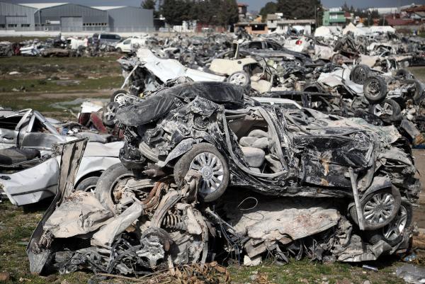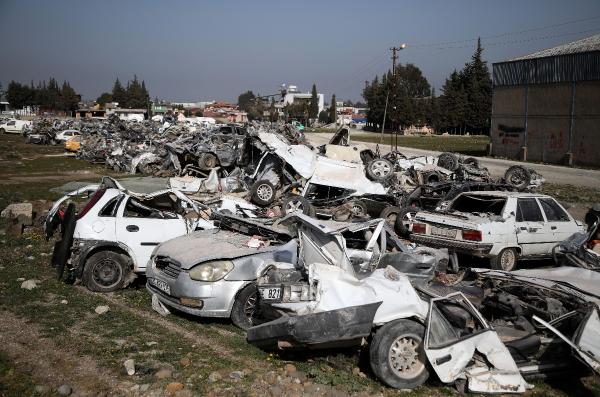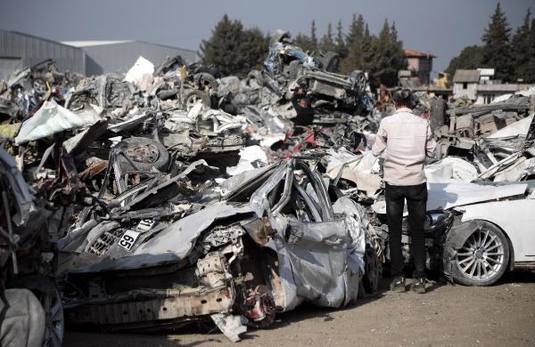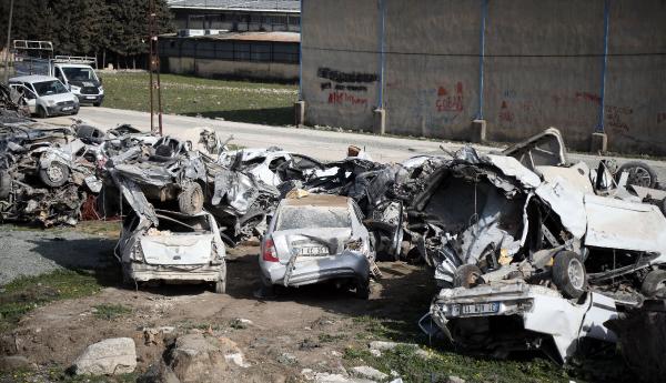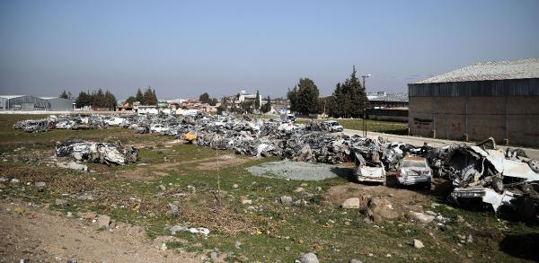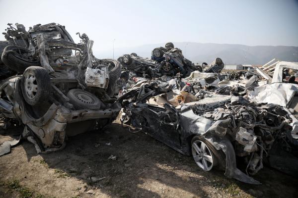 Deprem nedeniyle hasar almış araçların toplandığı alanlar, polis ve askeri personel tarafından korunuyor. Birçoğu ağır hasarlı araçlar arasında tamir edilebilecek düzeyde olanlar, sahiplerince çekiciyle alınarak bölgeye yakın sanayi tesislerine gönderiliyor.